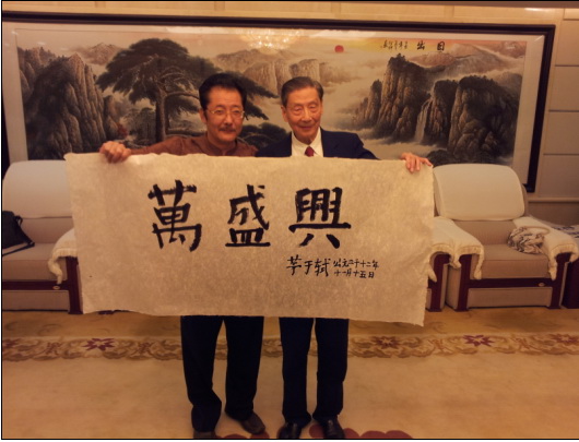 中國著名經(jīng)濟學家茅于軾與陳總一起,親自為萬盛興題字